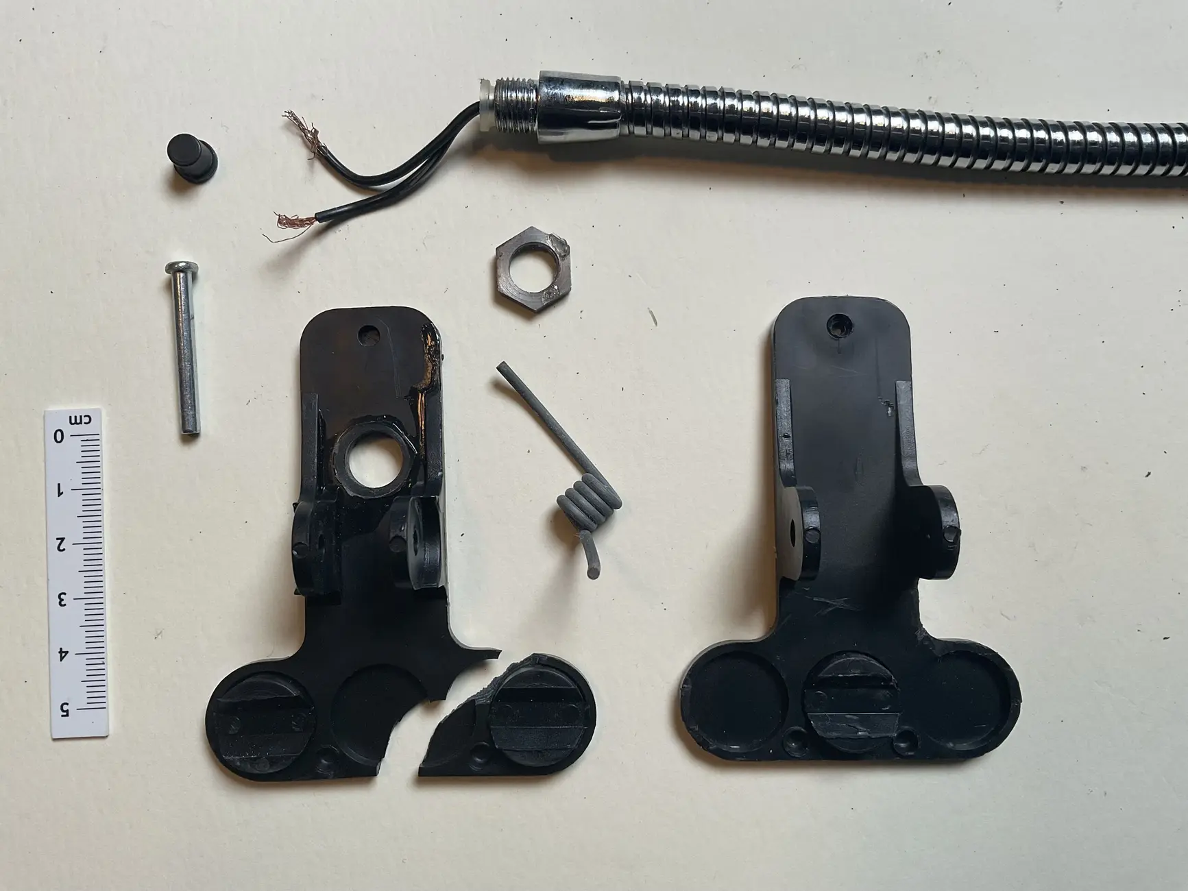 Die Klemmen der Lampen bestehen aus Kunststoff. Dieser Kunststoff ist durch Einfluss von Licht, Sauerstoff und der mechanischen Belastung gealtert, wodurch bei 5 der 17 Lampen die Klemme gebrochen ist und die Lampen nicht mehr an den Blechdosen montiert werden können.